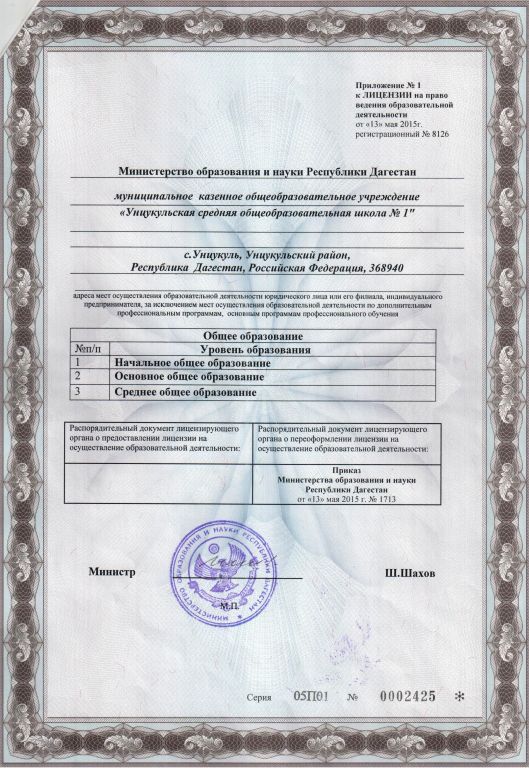 МКОУ "Унцукульская СОШ №1"